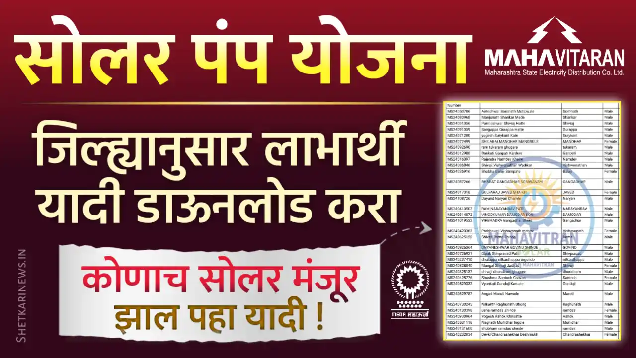 या योजनेचा मुख्य उद्देश म्हणजे शेतकऱ्यांचा वीज खर्च कमी करणे, डिझेल पंपाचा वापर कमीत कमी करणे – याउलट अपारंपारिक ऊर्जेला प्राधान्य देणे. शेतकर्यांची सोलर पंप मंजूर यादी म्हणजेच ज्या शेतकऱ्यांना सोलर पंप वाटप करण्यात आले आहे, अशा शेतकऱ्यांची यादी ऑनलाईन उपलब्ध झाली आहे.